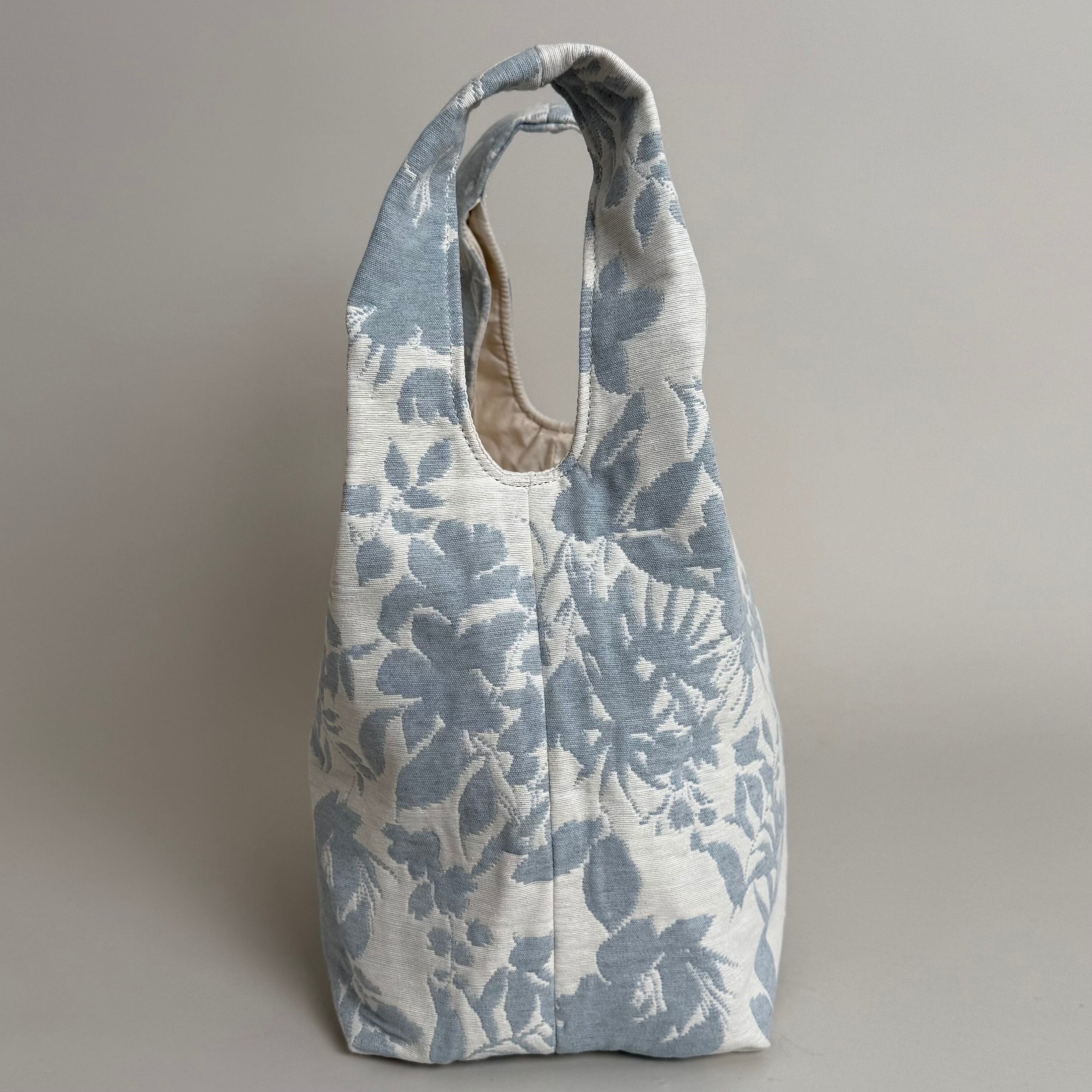 ジャカード織りのフローラルトートバッグ